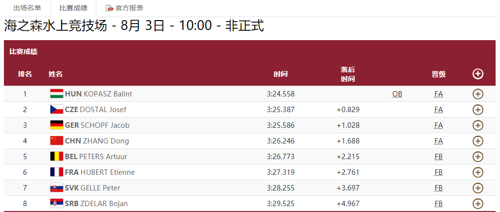 奥运快讯丨张冬晋级皮划艇静水男子1000米单人皮艇级A组决赛