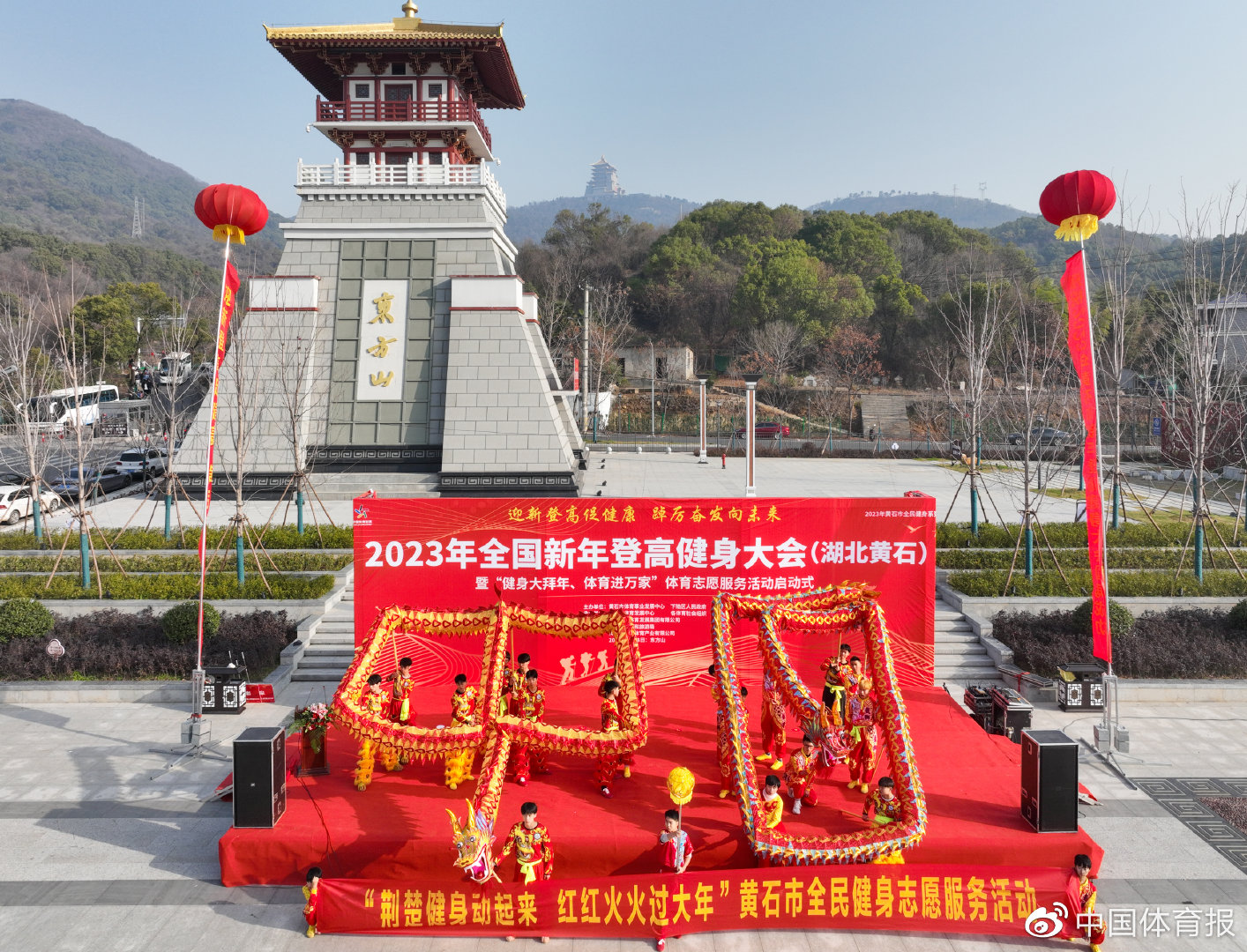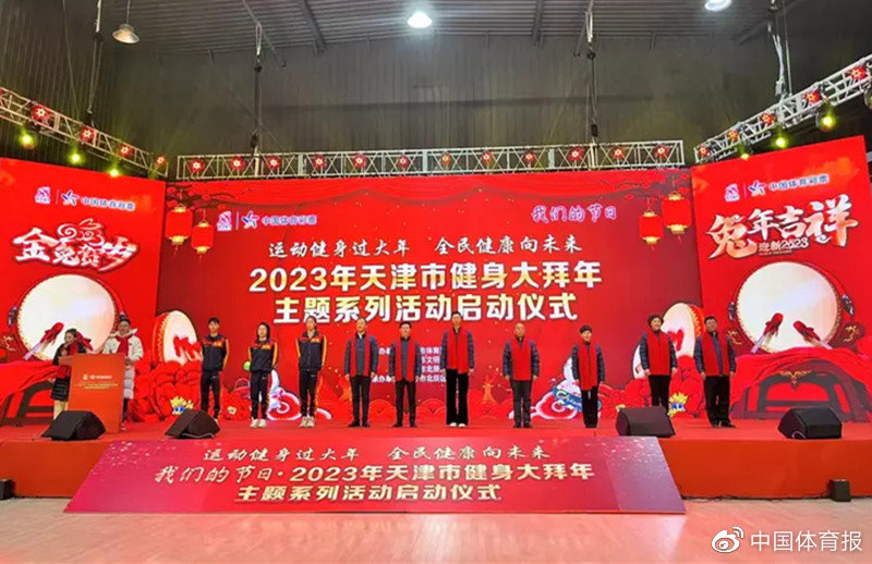 腊月二十八,2023年天津市健身大拜年主题系列活动启动,现场数千名健身爱好者参与,天津市各区分会场累计参与人数过万。 在启动仪式现场,威风灵动的龙狮在与会嘉宾点睛后龙腾狮跃。在室外场地,大鼓、高跷、龙狮、足球、飞盘项目齐上阵。室内排球之城、冰雪运动、篮球主题活动馆的健身指导、专项技能展示、表演赛丰富多彩,趣味运动、传统运动、新兴时尚运动呈现多元化。