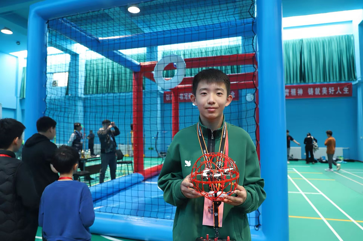 来自陈经纶学校的初二学生赵泽轩曾和队友一同在全国无人机足球公开赛中获得第二名,这让他更加坚定了对无人机足球的热爱。他说:“无人机足球是团队运动,需要分工明确、进攻和防守相互配合才能战胜对手。”在无人机足球项目中,他与队友们一起磨练了一年多,每周六、日都会相聚训练。“通过训练提升了操控和反应能力,在团队协作中找到了乐趣。在比赛中,和队友们一起奋斗、进球时的喜悦和胜利的欢笑都让我感到无比幸福。”队友刘馥瑞说。